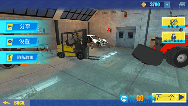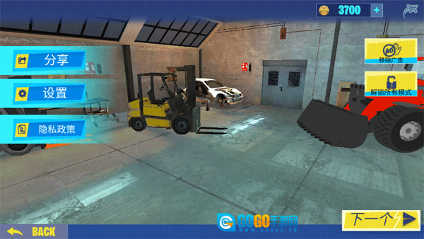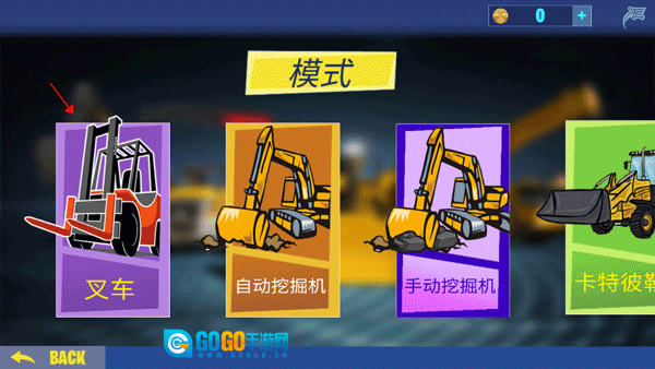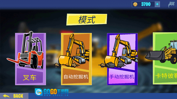 2、有很多的游戏模式,只有叉车模式已经解锁,如果想玩自动挖掘机,需要将叉车技能提升到6级才可以解锁这个模式。