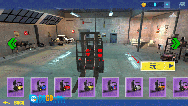 4、下方有很多不同颜色的叉车,点击“玩”开始游戏。