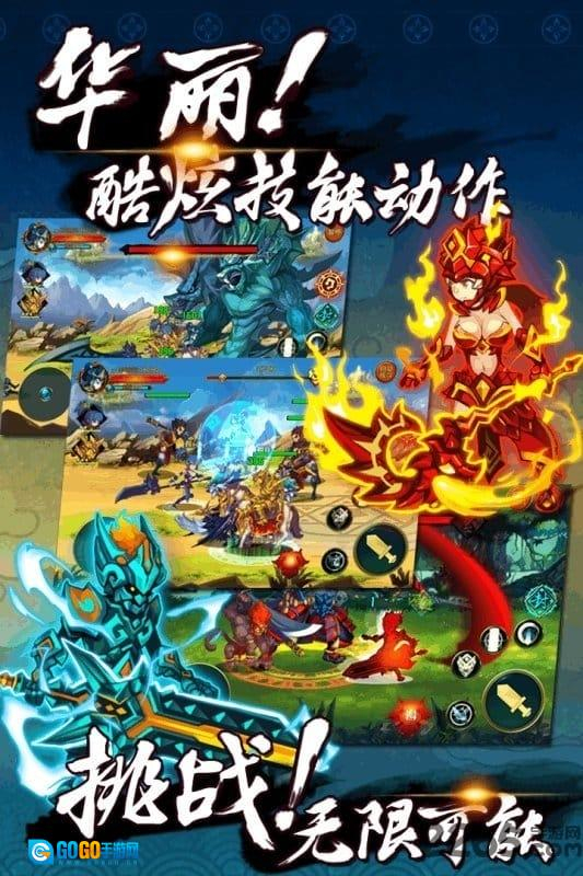 ,挑战各式各样的BOSS英雄。游戏的核心玩法涵盖出征、竞技场、神兽秘境以及活动副本;另外,玩家还可以消耗金币和钻石,在游戏内的商店和抽奖环节获取对应的稀有道具。