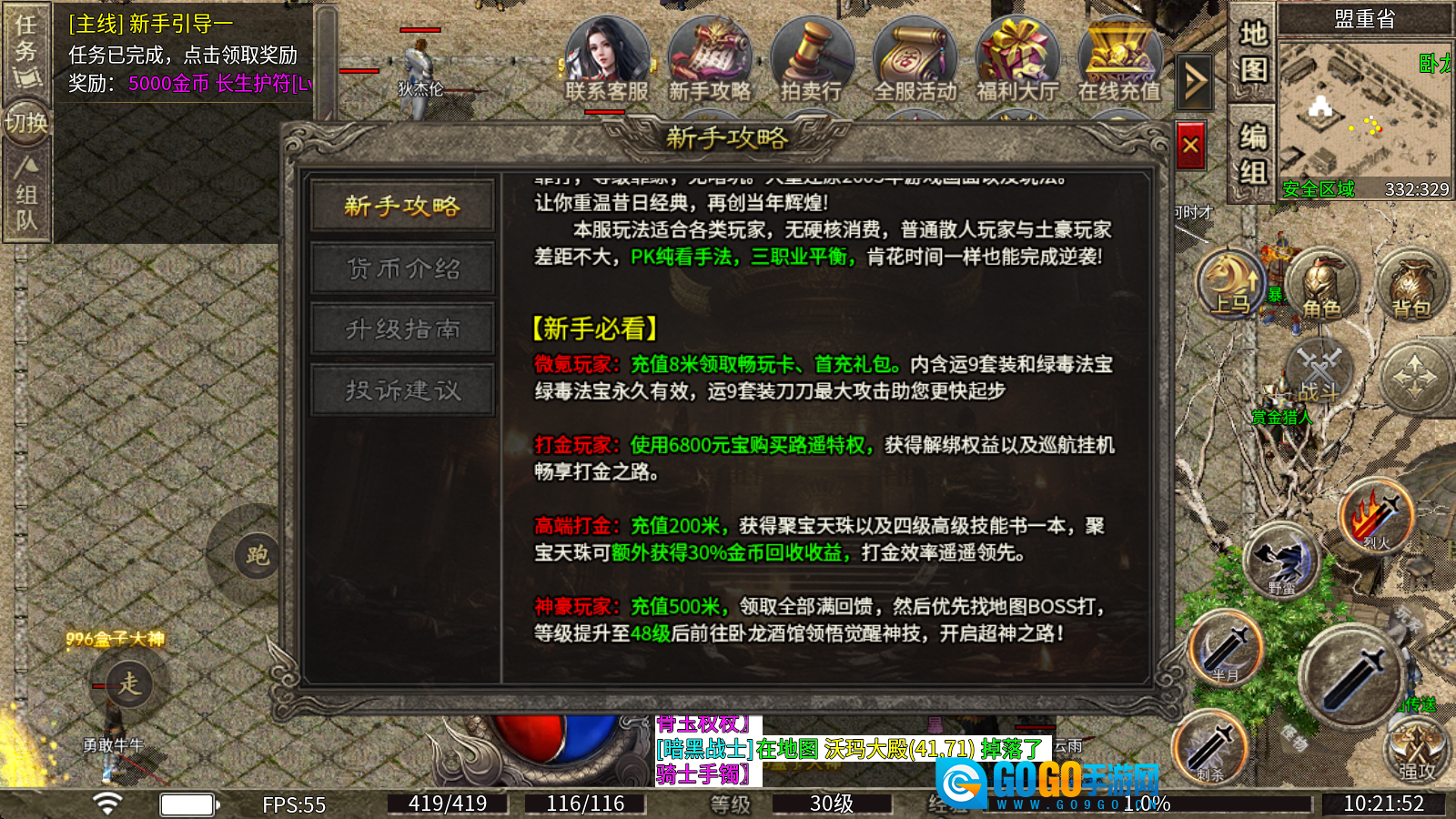 神豪玩家攻略:充值500米即可解锁全部满额回馈福利,之后优先挑战地图BOSS;待等级达到48级,前往卧龙酒馆领悟觉醒神技,从此开启超神进阶之路!