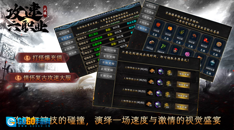 累计充值:本服小怪都可以爆案计充值卷免贵获得累计充值。