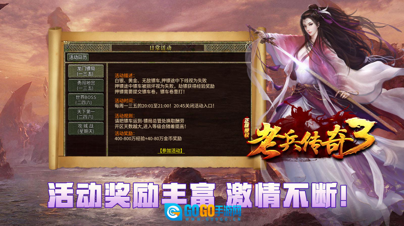 龙门镖局、勇闯地宫、世界BOSS等精彩活动每日不间断开启,经验、货币、材料奖励拿到手软,助力你轻松提升实力。