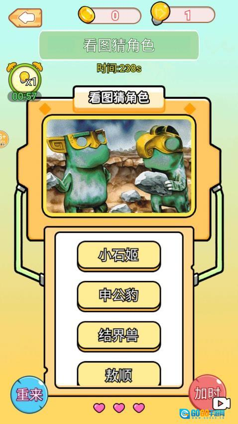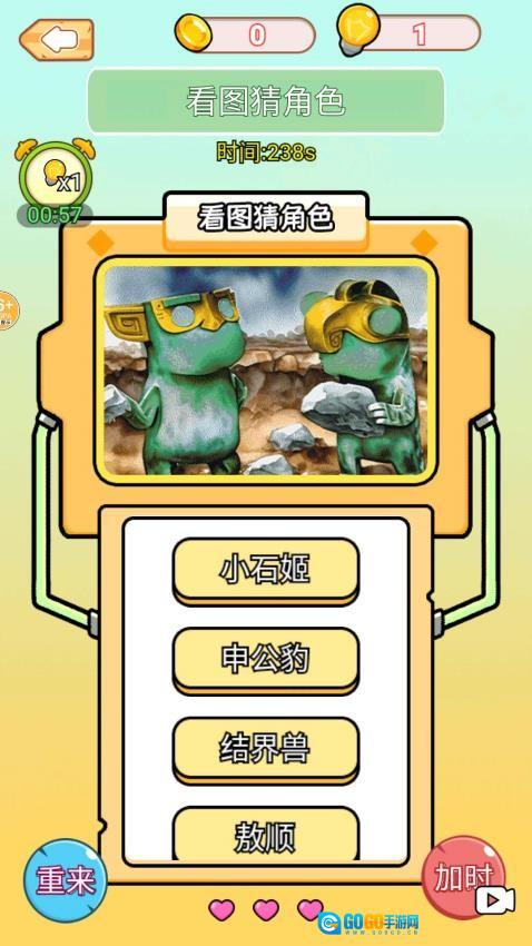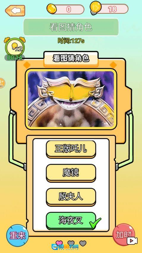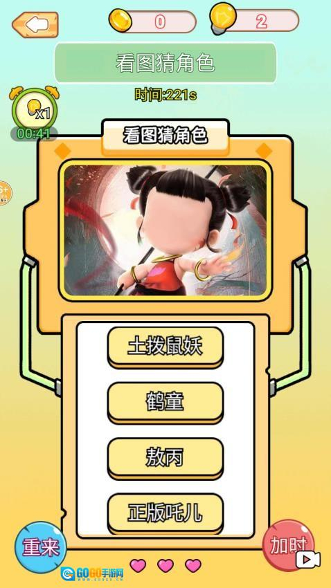 看图猜人物是一款超有趣的休闲益智闯关游戏。在这儿,玩家能看到好多熟悉的角色,像哪吒、鹿童、鹤童、魔镜之类的,只要结合他们的外观找到对应的名字,就能获得不少胜利机会,而且得在不同时候留意观察相关元素,这样才能找到对应的解题契机,也能得到满意的结果。游戏里还会有一些挺烧脑的题目,思考时得关注相关信息,才能快速发现具体情况,找到相关设定因素,好尽快确定人物身份。要是你也对这款游戏感兴趣,就赶快来试玩一下吧!