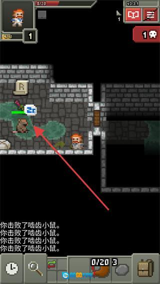 4、箭头指向【啮齿小鼠】,会多次提示需击败该【啮齿小鼠】,物品栏位于界面下方,可进行操作。