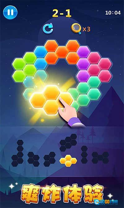 1、是一部不容错过的方块休闲类型游戏,作品中打造出了六边形的消除玩法,作品在俄罗斯方块的挑战基础上进行了改良,去除了横竖消除的限制,而且和传统的方块世界玩法直播间拥有更加考验玩家动脑动手的内容。