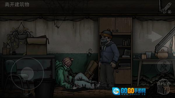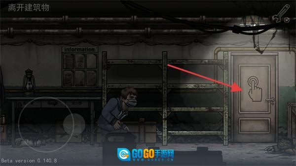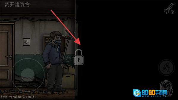 1、在“离开建筑物”的场景里,控制角色走到右侧的门旁边,点击门来触发互动,为打开出口做准备。