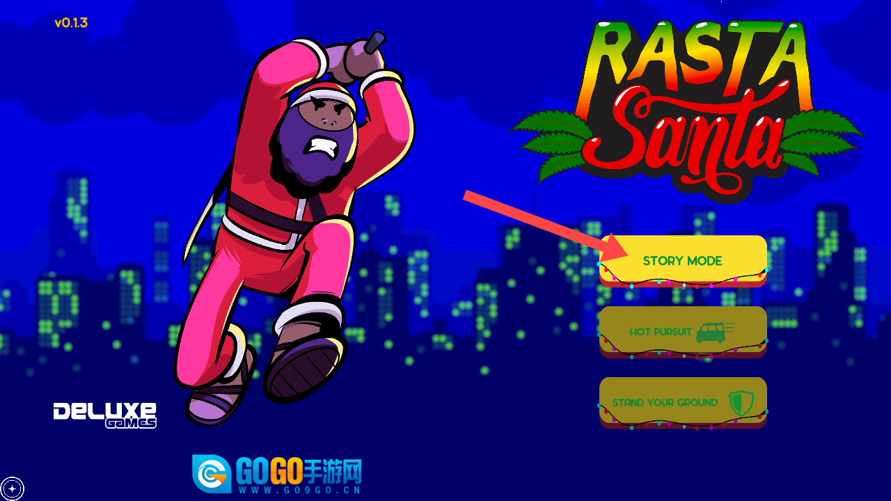 进入【RastaSanta】游戏界面后,点击【STORYMODE】选项,即可开启故事模式的冒险旅程。