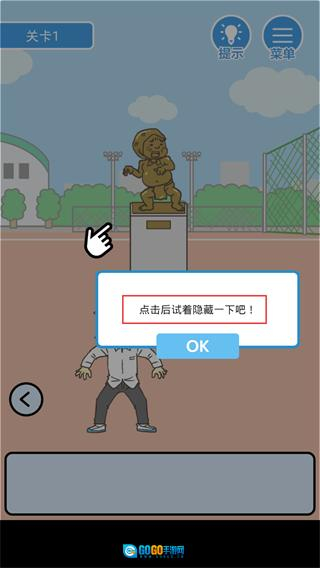 2、点击【OK】关闭提示,接着尝试点击【雕像】区域来完成隐藏操作,以此避开可能存在的视线检测。