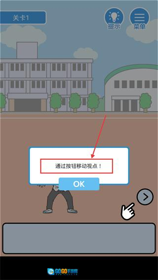1、点击【OK】按钮确认提示,借助【箭头】按钮移动视角,先熟悉场景布局,为后续操作做好准备。