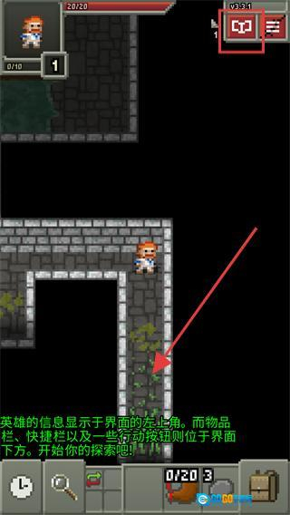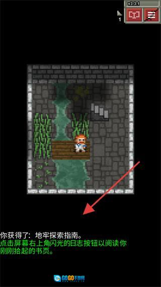 1、获取到【地牢探索指南】,提示点击屏幕右上角闪烁的【日志】按钮,查看刚得到的书页内容。