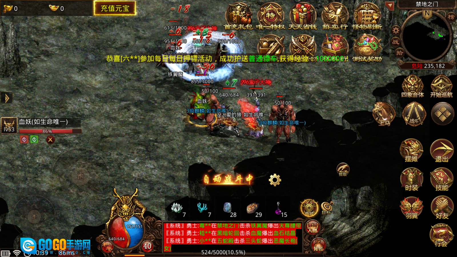 游戏里的主要货币是金币,打怪就能得到,另外元宝也能轻松获取,完全不用担心发育问题。