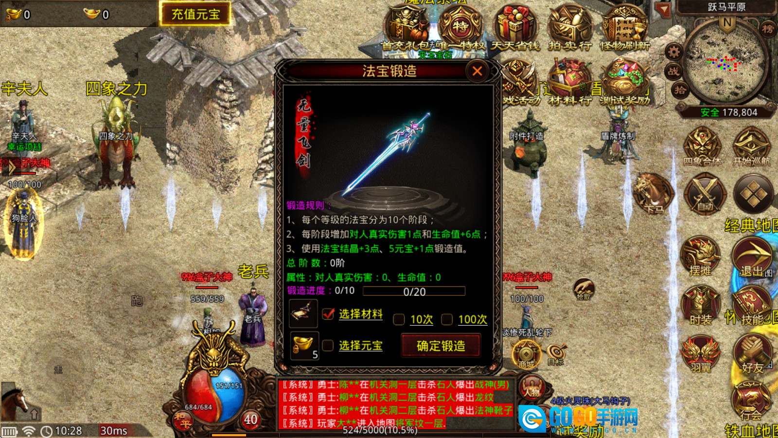 法宝锻造规则如下:锻造过程可消耗元宝或法宝结晶,每个等级的法宝包含10个阶段,每个阶段能提升1点对人真实伤害与6点生命值。
