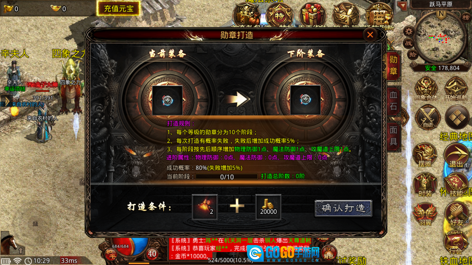 附件打造规则如下:消耗金币与勋章结晶即可进行锻造操作。每个等级的勋章均划分为10个阶段,每次打造存在失败几率,若打造失败,后续成功概率将提升5%。各阶段属性加成按顺序依次为:物理防御+1、法术防御+1、攻魔道上限+1。