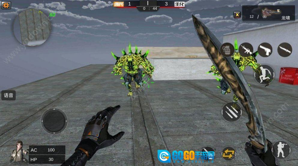 左轮控制角色的运动,滑动屏幕调整瞄准方向。