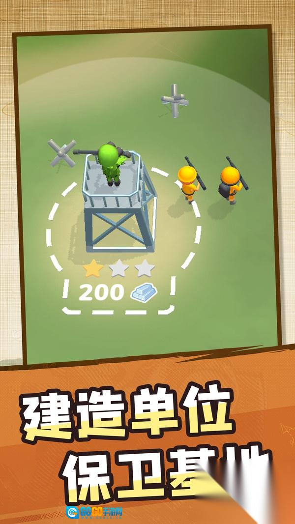 玩家只需通过简单的点击与拖动操作,就能指挥小兵去收集战场资源,还能建造防御工事和瞭望塔。