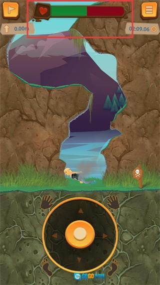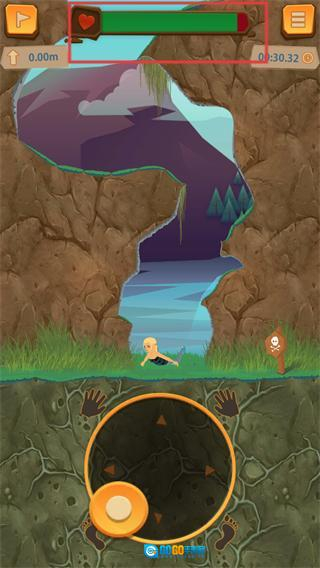 1、开局后先观察左上角的生命值(绿色条),攀爬时尽量避免失误,防止生命值减少(变红)。