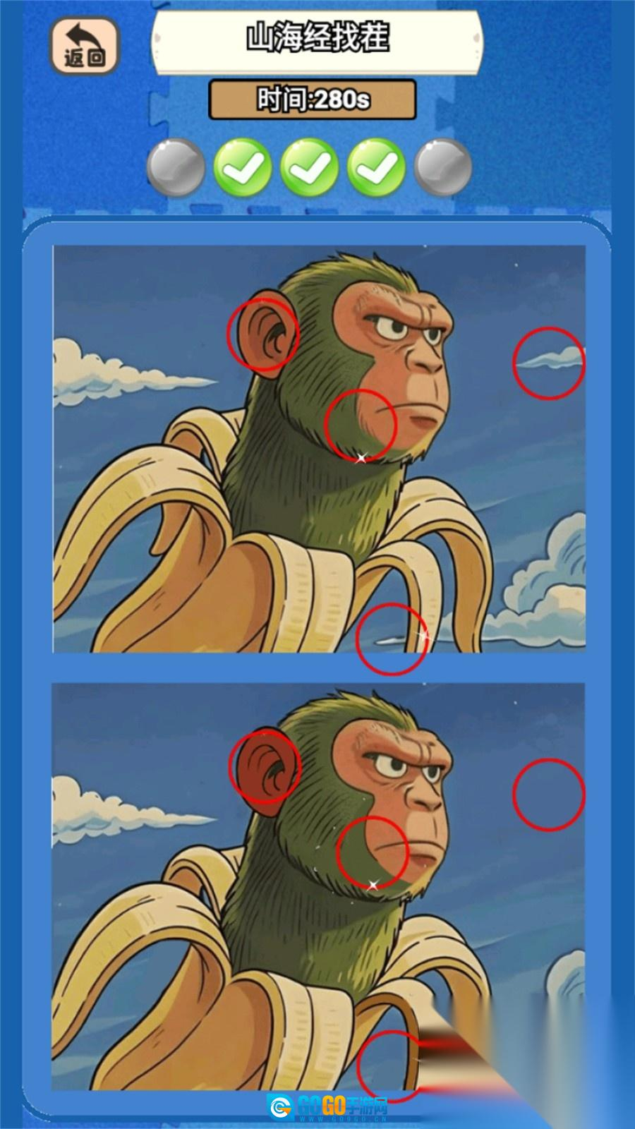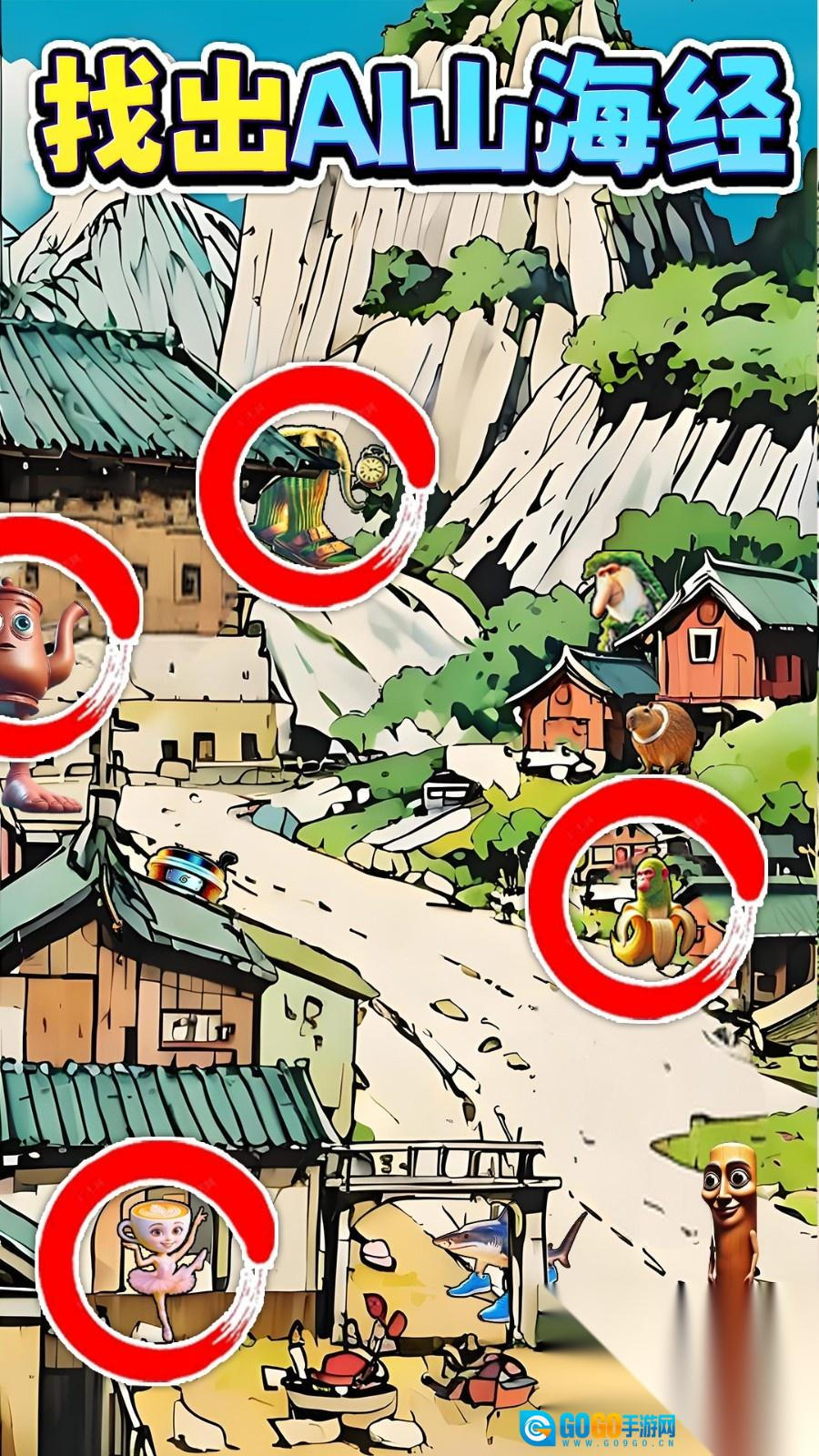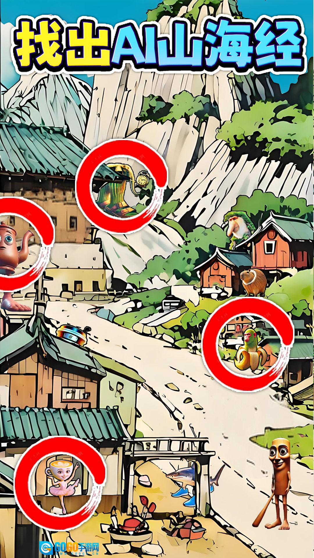 面对两张带有山海经梗的插画,快速浏览图片,找出角色和背景的不同之处,点击标记差异点。