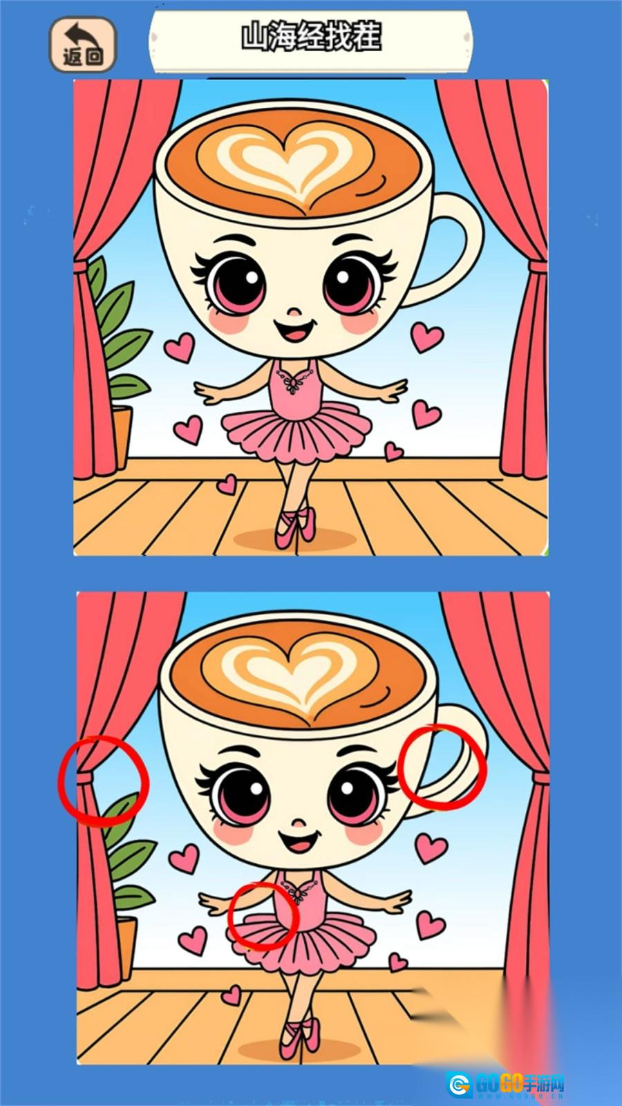 扫图时按照从左到右、从上到下的顺序逐一对比,注意不要看漏任何细节,特别是背景里的小物件,比如云朵、盆栽这类容易被忽略的元素。