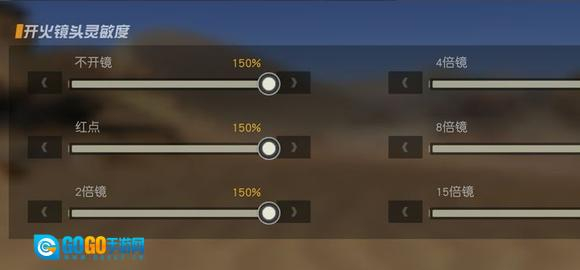 4、开火镜头灵敏度共有6种设置,不开镜和红点模式建议调至最大,其余模式可根据个人手感调整,毕竟开镜状态下瞄准敌人本就有一定难度。