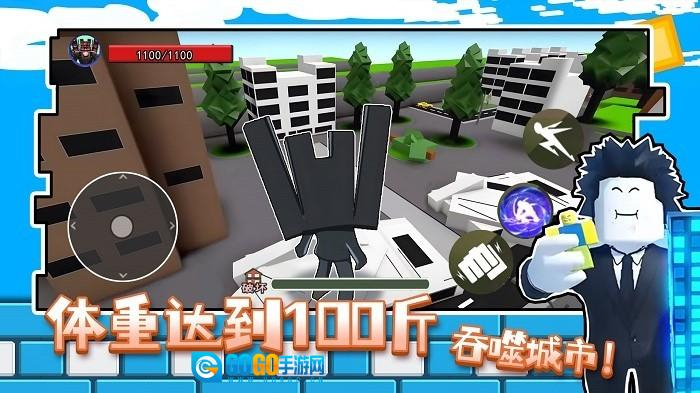 《体重冲刺100斤》是一款趣味吞噬类小游戏,玩家将操控小人不断吞噬建筑、物品等可吞食的目标,通过持续进化让自己变大变强,最终达成100斤的体重目标,还能挑战并击败各种怪物!