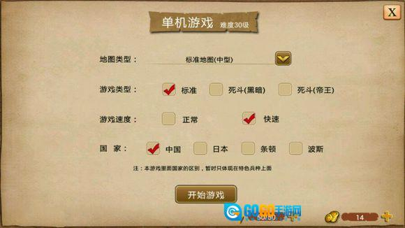 闲话少说,首先我方选择中国,地图为最普通的标准地图,ai随机到日本。