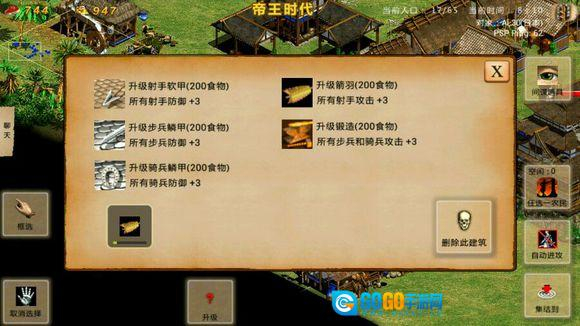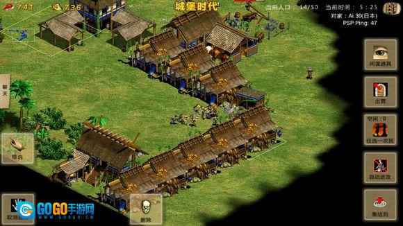 敌人民兵前来骚扰,这时用农民在从矿场到城镇中心一线用住房地基围住,并派一名采果农民躲进城镇中心(选中一名采果农民,点下方的“避难”)就可以轻松射死敌人民兵。待敌人死后,点击右侧的“出营”农民便会重新出来工作。