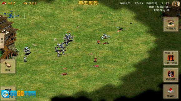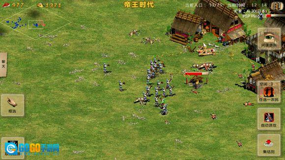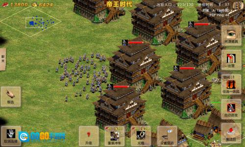 我方军队成型,点击右边的“自动攻击”开始进攻。农民跟上在敌人炮塔附近建造炮塔,利用己方炮塔摧毁敌人炮塔和其他建筑
