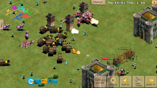 诸葛弩成型,意味着以步兵为主的敌人已经不能对你造成太大的威胁了。抓紧时间开始经济发展,前方微操一下点射敌人火炮以及不让敌人剑士砍到