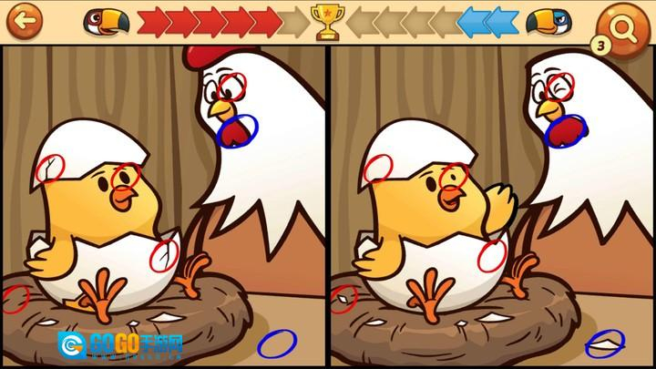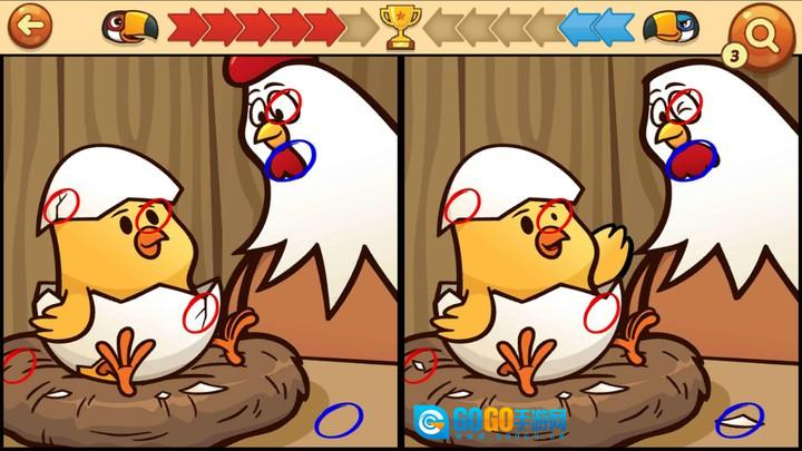 这是一款找茬游戏。数十上百张风格各异的卡通图片,随机设置不同之处,你能否凭借敏锐的观察力找出两张图里的差异呢?除了单人模式独自挑战外,还能与电脑对战,在限定步数内战胜对手,积累胜利积分,冲击最强王者的荣誉。赶紧来锻炼眼力找茬吧。