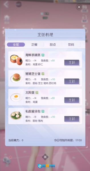 2、然后点击左上角”饿扁了“,选择要烹饪的料理;