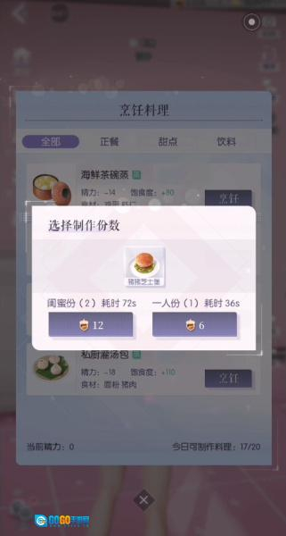 4、确认后,角色会自动到冰箱内选取食材进行制作;