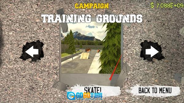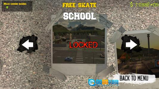 2、游戏为玩家提供很多的关卡,每个关卡都有不同的地图,点击SKATE开始游戏;