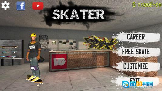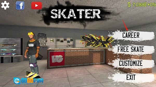 1、在爬爬资源打开滑板模拟器手机版,点击CARER开始游戏;
