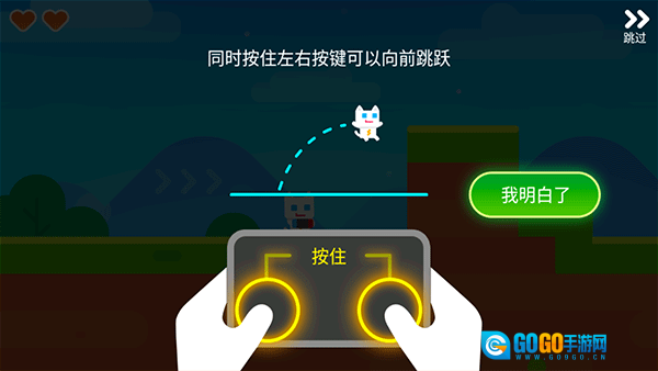3、在障碍物面前,同时按住左边按键和跳跃按键即可跨越障碍物
