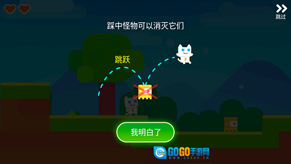 4、过关途中会有怪物出现,踩中怪物可将它们消灭掉,反之玩家将会损失一次生命