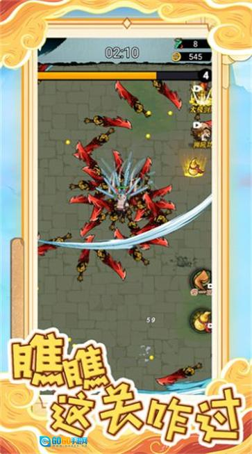 看看这关该怎么通过呢?这款游戏里除了割草玩法外,还设计了各式各样的道具与技能,玩家能借助它们提升自己的实力。另外,也能通过游戏内的奖励机制获取金币,进而解锁新的装备或者角色。每个角色都具备独一无二的特殊技能和属性,玩家可以依据自身的偏好挑选合适的角色去挑战不同关卡。