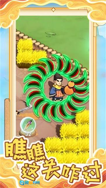 独特的鸠摩转刀玩法:玩家需滑动屏幕操控角色鸠摩转刀,割除前方出现的草坪,以完成关卡挑战。