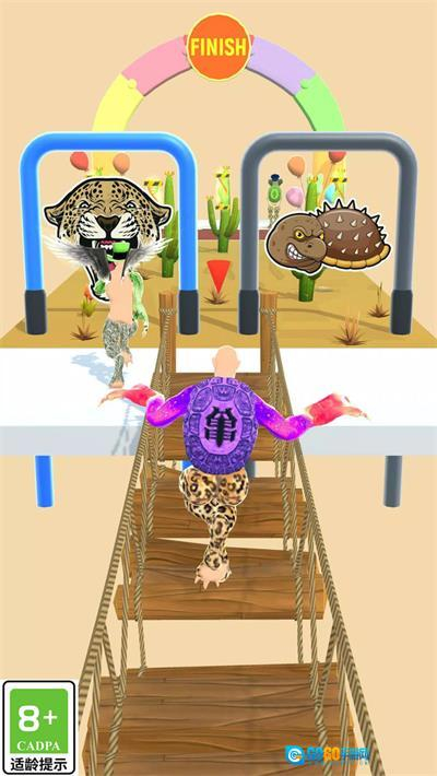 解锁各类变异生物后,玩家便能即刻化身为不同动物,在跑酷过程中展现出专属特性。