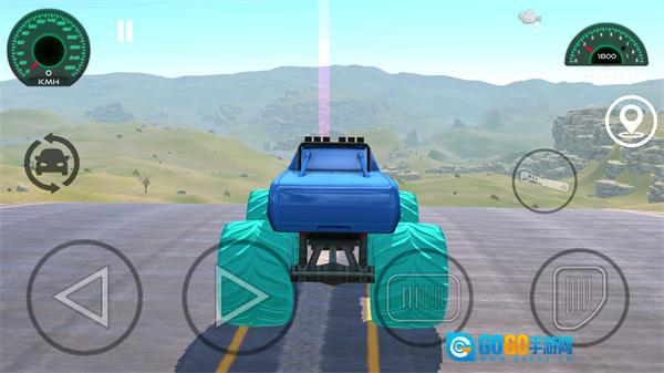 进入游戏后,你可以操控自己的越野车驾驶。左侧是方向按键,右侧是加速和刹车按钮,点击左侧的车辆切换按钮,还能切换使用不同的越野车。