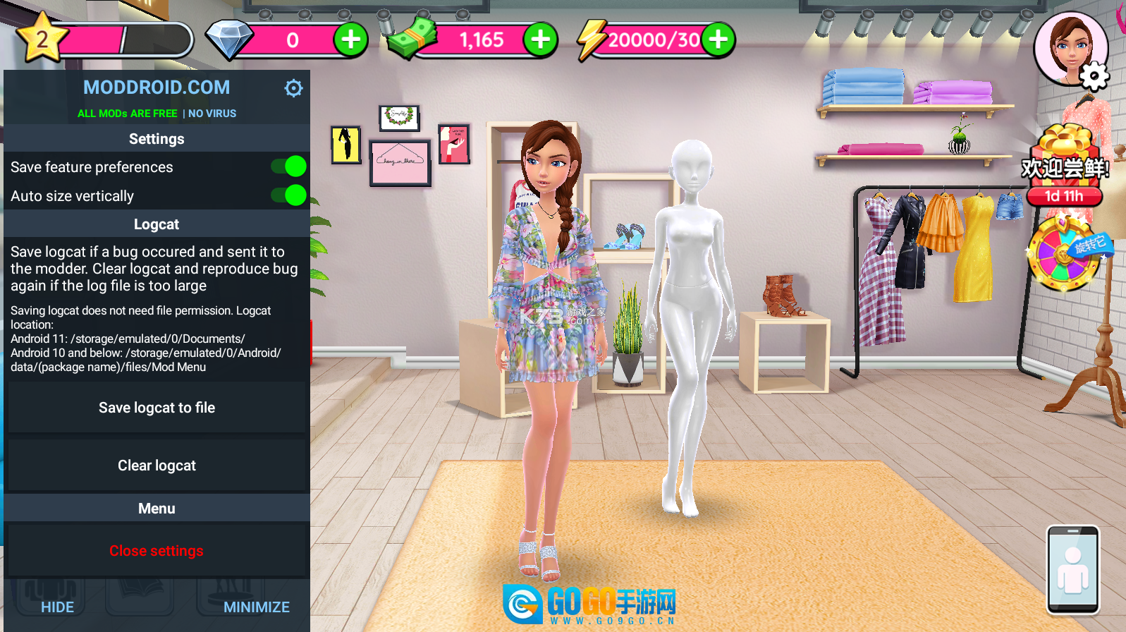 游戏已,菜单(进入游戏前需要开启游戏的悬浮窗权限,否则菜单无法运行),进入游戏后菜单直接运行,钻石为0也可以购买时装,,钞票用不完! 游戏真实模拟时尚世界