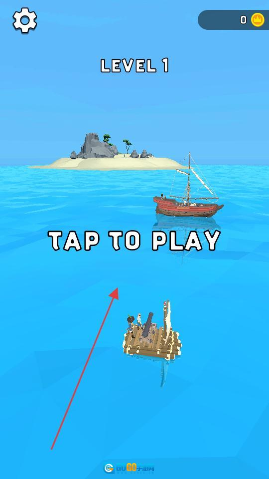 打开海盗袭击游戏,进入关卡页面,点击“点击开始游戏”,操控木筏上的角色,准备开启海上射击挑战。