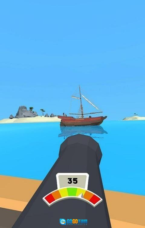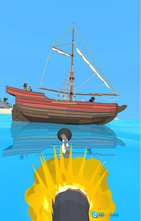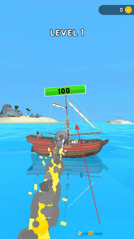 把目标对准远处那条带有100点血量条的帆船,点击屏幕就能发射炮弹,只要击中帆船就能减少它的血量,从而推动游戏继续进行。