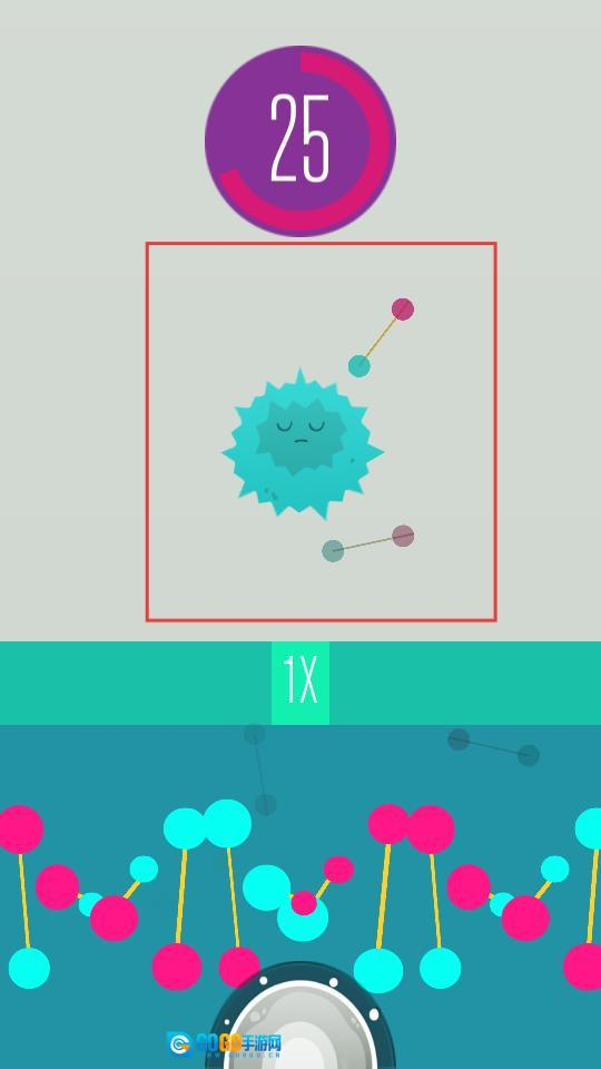 快速点击屏幕来收集能量,以此推动细胞进化。留意“TAP FASTER”的提示,加快点击的频率,积累足够的能量后,就能触发基础进化,解锁新的细胞形态。