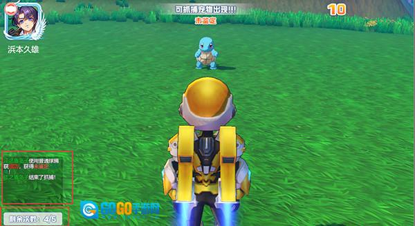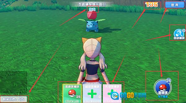 左下角显示的是剩余投球次数,一旦投球次数耗尽,宝可梦便会逃走。