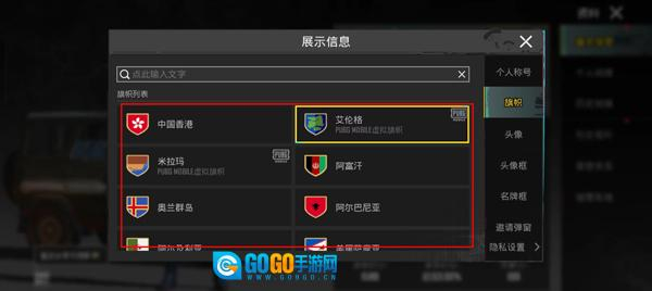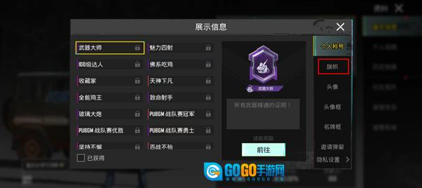 3、在展示信息区域,右侧个人称号的下方设有一个旗帜选项;