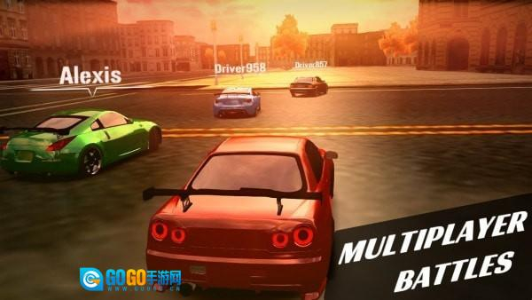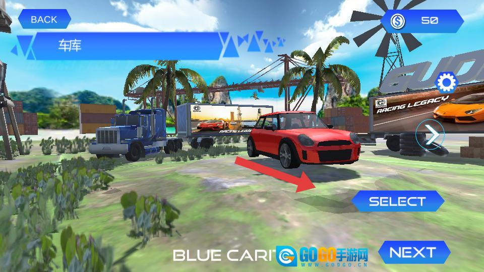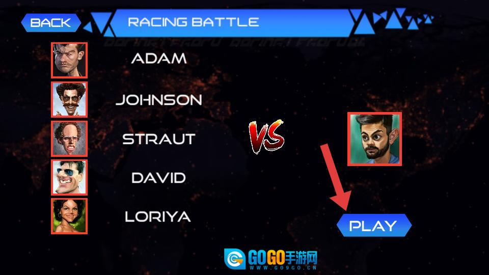在车库内选好赛车后,点击select确认所选车辆,即可进入下一步的赛车对决匹配环节。