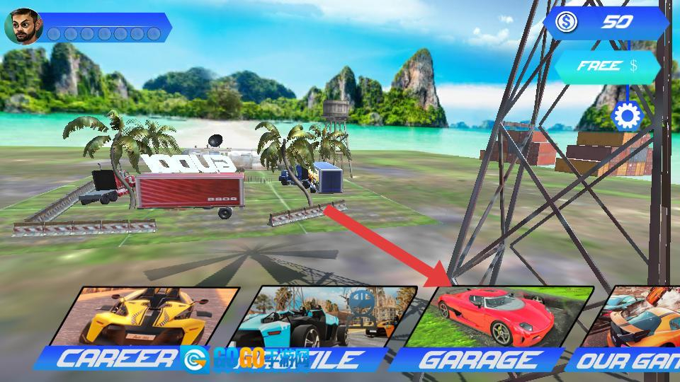 接着进入主界面,点击garage,进入车库,能查看各类赛车,挑选心仪的赛车,为参与对决做准备。