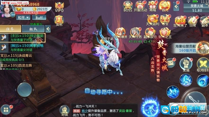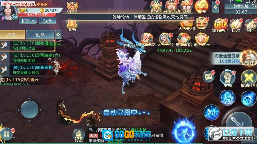 挂机即可轻松刷怪、挑战副本,修炼途中大量神装自动掉落,爆炸属性一键就能打造;云雾缭绕的秘境之中,处处可寻仙迹踪影。人人都能争夺VIP资格,丰富礼包疯狂派送,全新装备玩法助你打造最强战力;萌宠与战骑强势助阵,伴你踏上斗精怪、战胜佛的仙侠之路