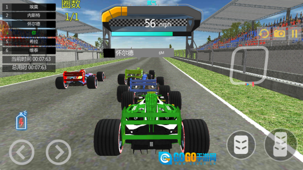 通过虚拟摇杆操控方向,点击油门按钮就能完成极速冲刺,长按刹车键并搭配方向键可触发漂移动作,漂移过程中轮胎还会呈现出烟雾特效。