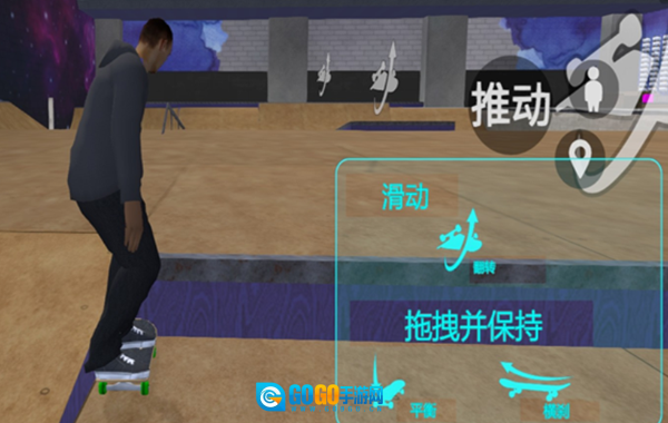 收集各类资源,对滑板的板面与轮子进行改装,调节其弹性和摩擦力的属性,使其能够适配不同的使用场景,进而优化操作时的体验。